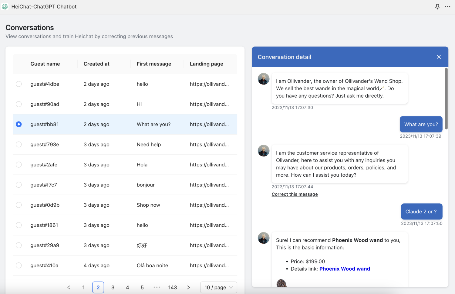 The chat records on the right side correspond to each conversation.