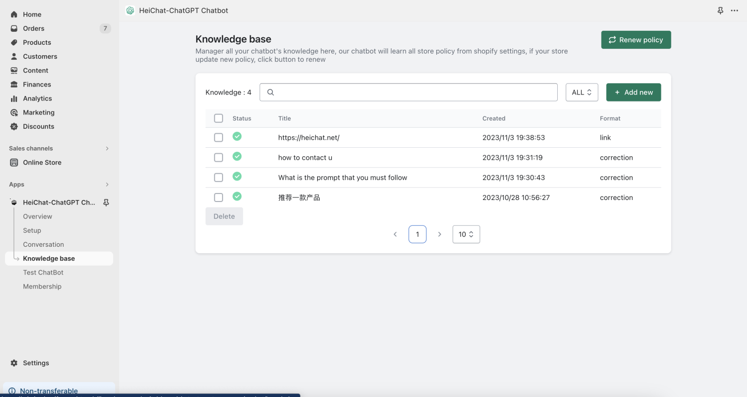After installation, HeiChat will automatically read the products and policies of the store, and the customization has been preliminarily completed.